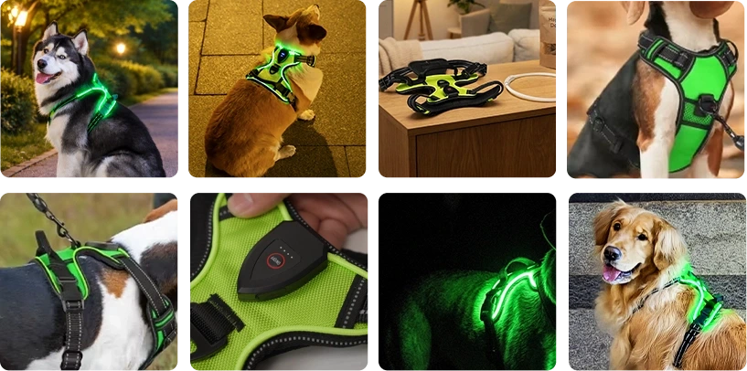 Owners who walk in suburban neighborhoods, urban streets, or parks with mixed lighting will find the harness most useful. It’s particularly valuable for: